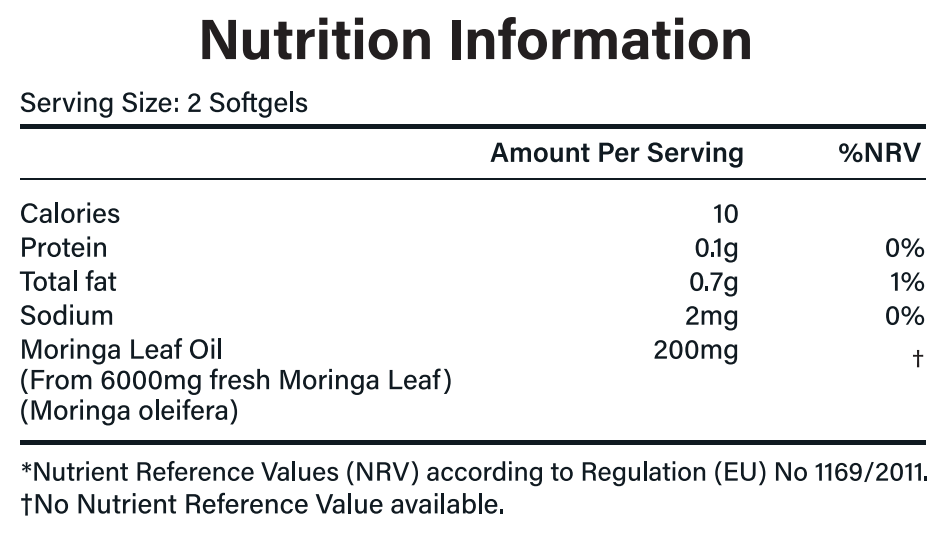 Mit jeder Portion erhältst du die geballte Kraft von 6000 mg Moringa-Blatt – dem „Wunderbaum“ aus der Natur. Moringa ist bekannt für seinen natürlichen Gehalt an Proteinen, gesunden Fetten und wertvollen Pflanzenstoffen – perfekt zur Unterstützung deines Energiehaushalts.